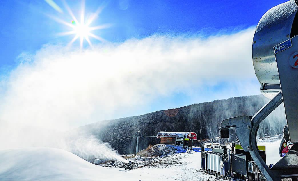 深秋气温走低,崇礼云顶滑雪公园造雪机马力全开,昼夜轰鸣造雪,迎接11月1日开板滑雪的到来。